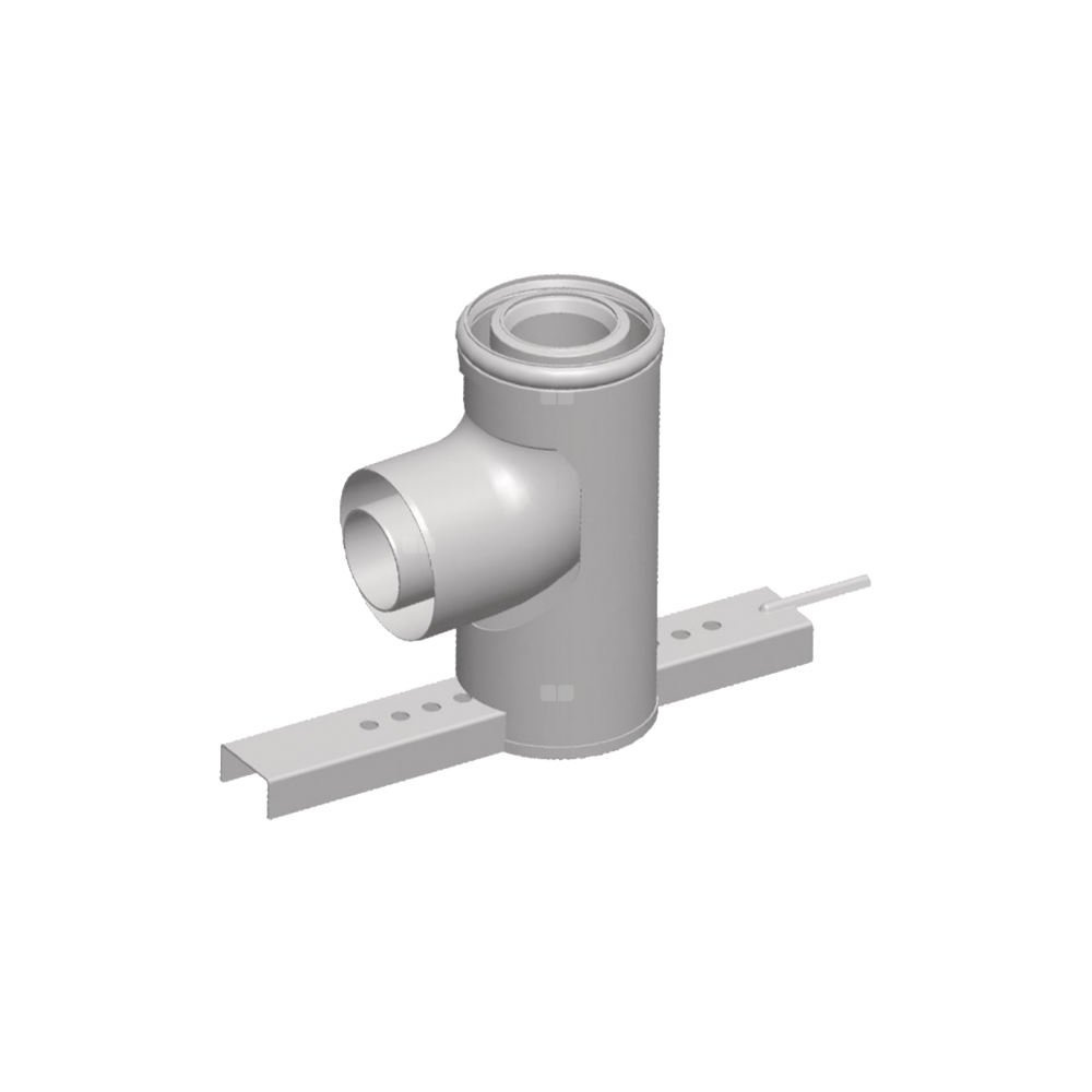 koncentryczne kolanko wspornikowe 87 st. - DN80/125, dla przyłącze do koncentrycznego systemu powietrzno-spalinowe do zabudowy w szachcie wraz z podporą