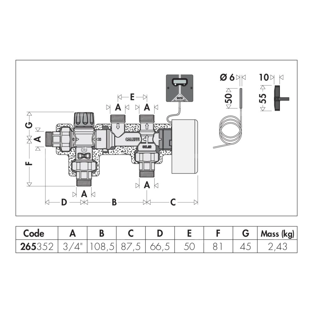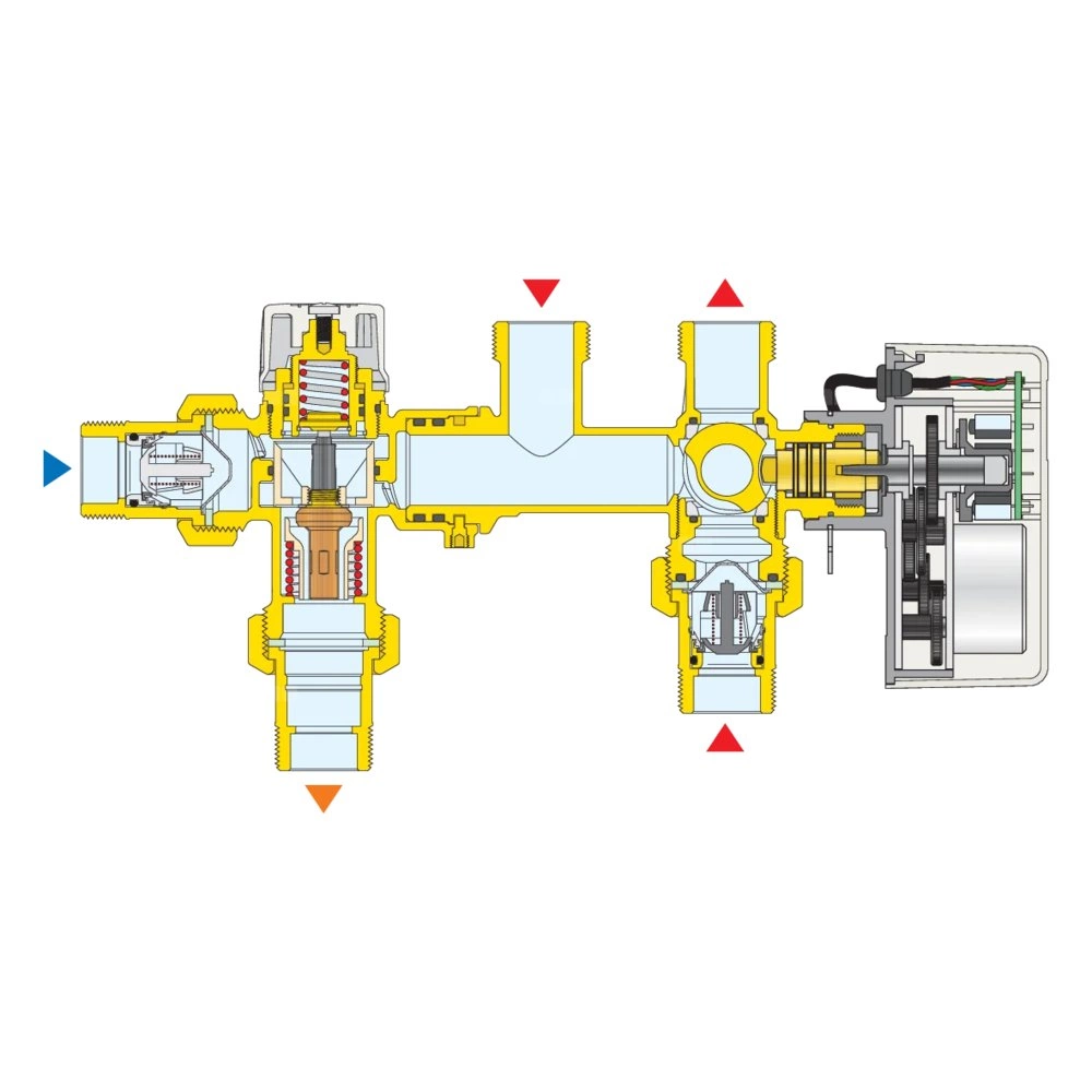 - termostatyczny antyoparzeniowy zawór mieszający do instalacji solarnych regulowany przy użyciu pokrętła. Wyposażony w filtry i zawory zwrotne na wlotach;