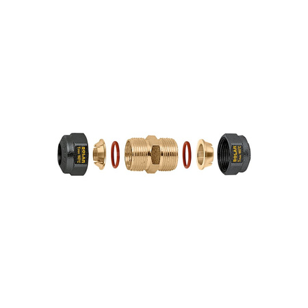 Złączka prosta, skręcana uszczelka O-Ring do instalacji solarnych Do rur z miedzi wyżarzonej, twardej miedzi, mosiądzu, stali miękkiej i stali nierdzewnej. Nakrętka niklowana, czarna. Przyłącze: Ø 18. Maksymalne ciśnienie pracy: 16 bar. Zakres temperatury medium: -30–160 °C. Maksymalne stężenie glikolu: 50 %. Medium: woda, Roztwory glikolu.