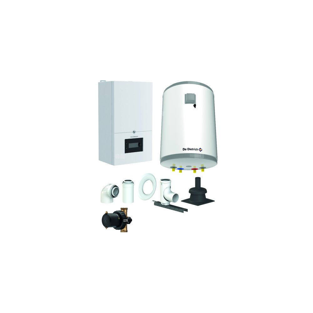 Pakiet - Kocioł gazowy jednofunkcyjny DE DIETRICH MCR4 19 kondensacyjny wiszący 2.5 - 20.7 kW + Zestaw powietrzno-spalinowy szachtowyBazowy PP/Alu fi 60/100 na fi 60 + Zasobnik c.w.uAQUAvie100 + Filtr magnetyczny XS90