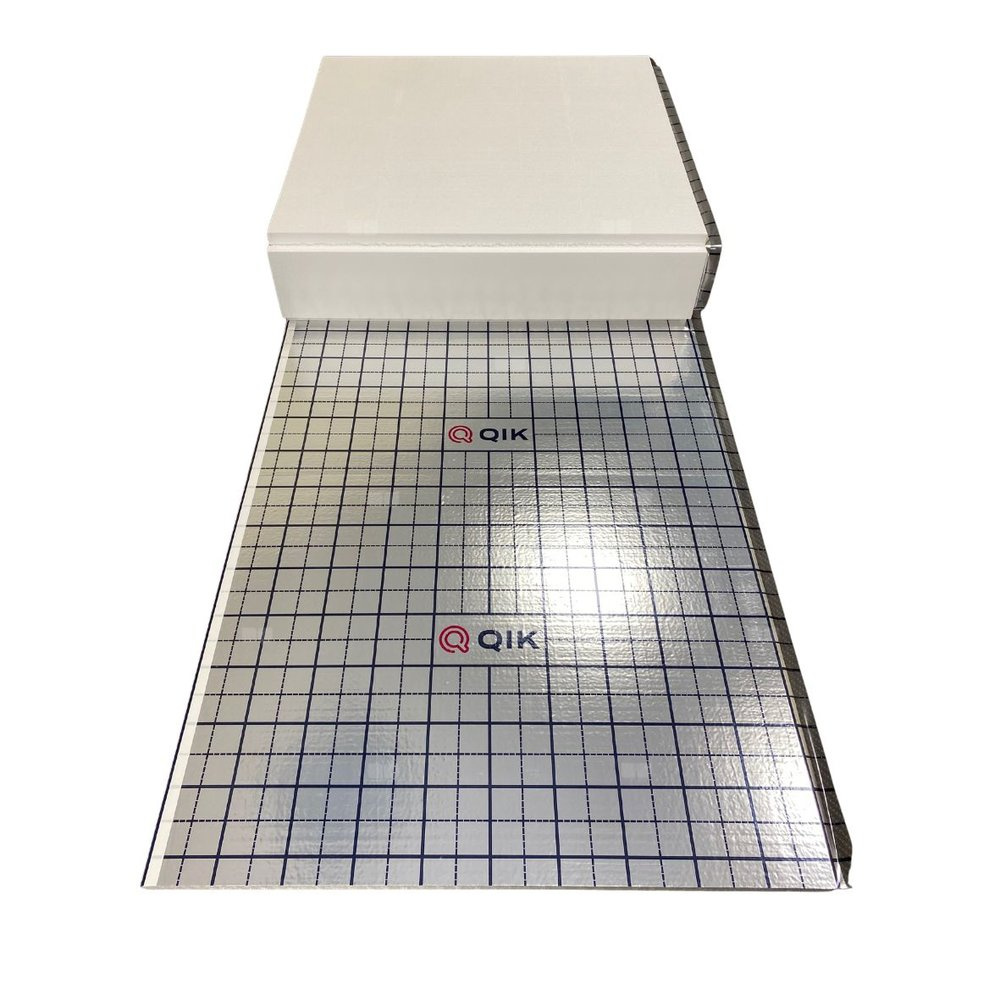 Płyta izolacyjna QIK składa się z płyty styropianowej EPS 80 o grubości 30 mm, pokrytej laminatem folii polietylenowej i polipropylenowej o łącznej grubości 0,13 mm. Dodatkowo zakładka samoprzylepna ułatwiwająca łączenie poszczególnych płyt. Folia z rastrem - wykonanym nadrukiem kraty o rozmiarze 5 cm, mającym za zadanie ułatwienie równego rozłożenia rur grzewczych. Płyty izolacyjne pakowane są na palecie, ułatwiają transport. Podano cenę za 1 m².