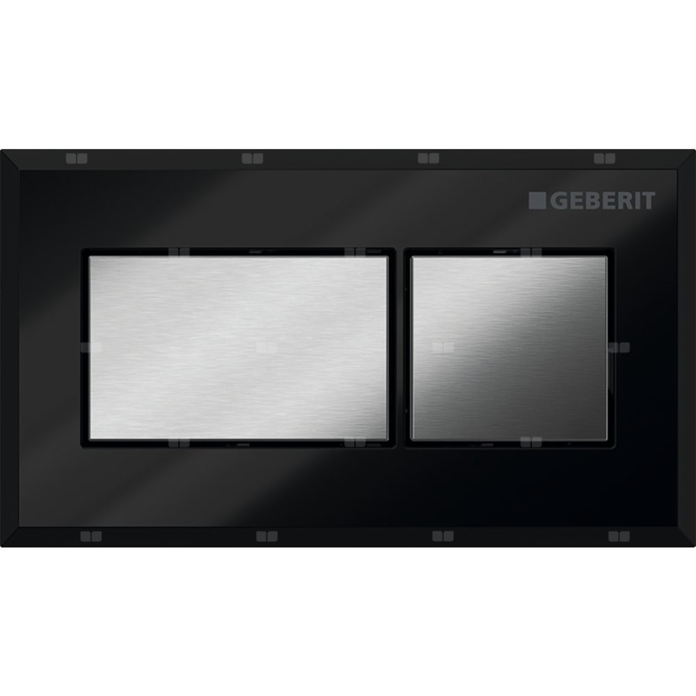 Pneumatyczny przycisk uruchamiający WC Geberit, kształt geometryczny, podtynkowy, dwudzielny, Sigma 8cm, czarny