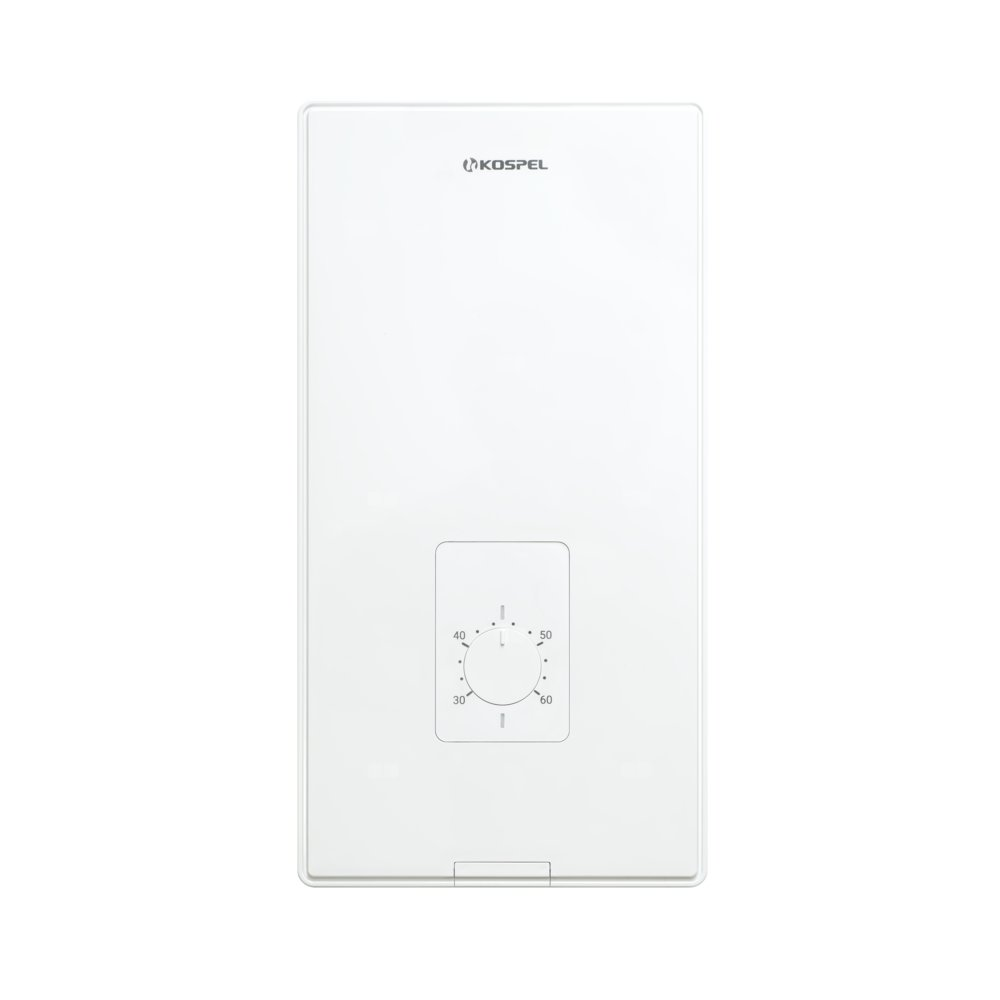 Podgrzewacze wody ze sterowaniem elektronicznym i pokrętłem do regulacji temperatury wody.