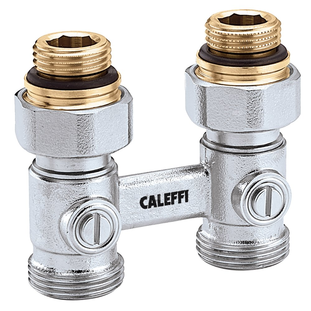 Podwójny zawór podłączeniowy do grzejników płytowych. Wersja prosta (przyłącza podłogowe) - 1/2'' GZ