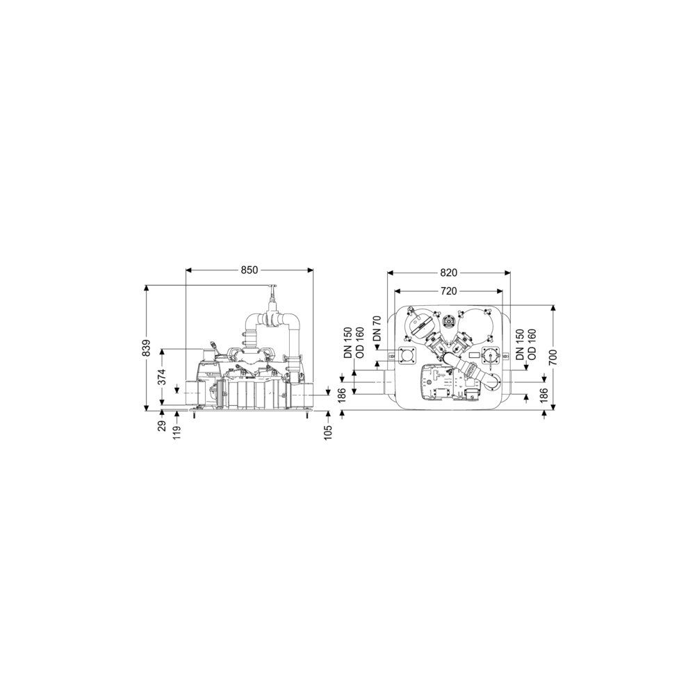 Wielkość nominalna odpływu (DN): 150 mm