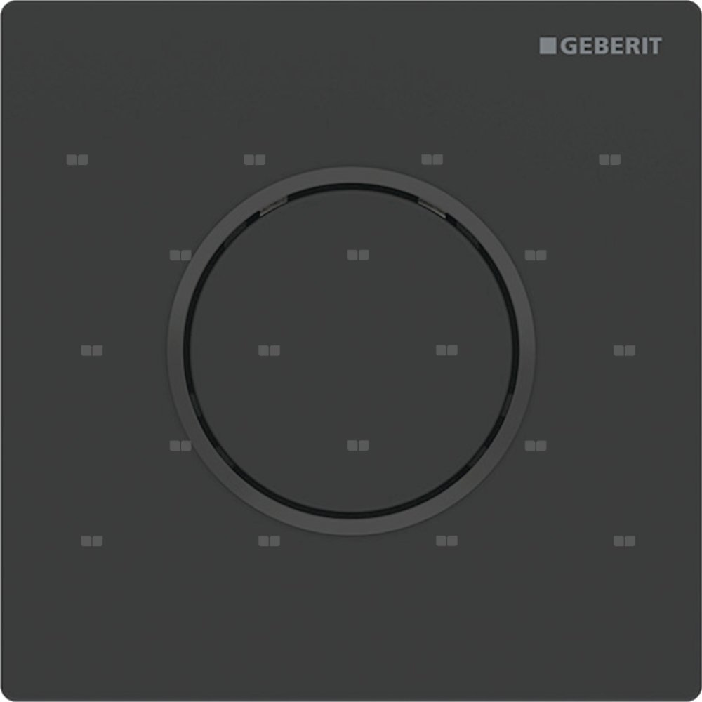 Przycisk uruchamiający Geberit typ 10 do zaworu spłukującego do pisuarów z pneumatycznym uruchamianiem spłukiwania, płyta i przycisk: lakierowane na kolor czarny matowy, z powłoką easy-to-clean, pierścień ozdobny: czarny