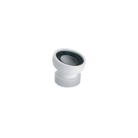 Przyłącze kanalizacyjne krótkie, L-130mm. Kąt 14 stopni. Wejście 90-110mm z uszczelką wargową, wyjście 110mm z uszczelką kołnierzową.