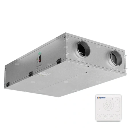 Rekuperator FLAT 350+ płaski, z panelem Wi-Fi, podwieszany lub do montażu na stropie, z by-passem, z nagrzewnicą wstępną i wymiennikiem przeciwprądowym