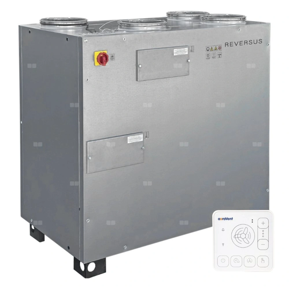 Rekuperator Reversus 1300+ z panelem Wi-Fi, z wymiennikiem przeciwprądowym (wydatek 1300 m³/h), z by-passem, z podstawą do montażu na podłodze, zawiera nagrzewnicę elektryczną