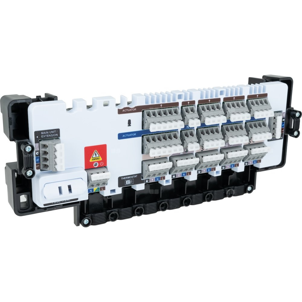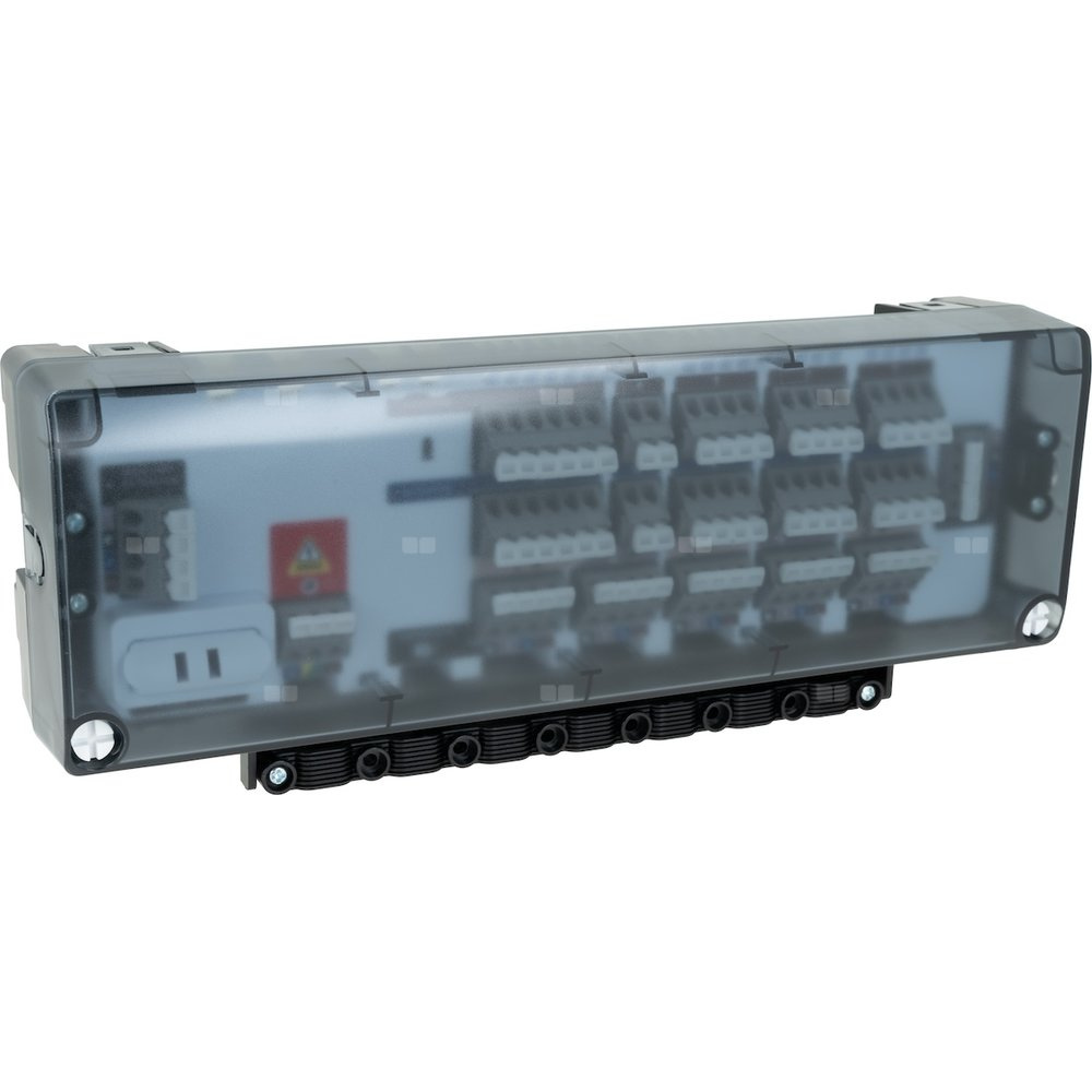 - Umożliwia podłączenie regulatorów do grzania/chłodzenia płaszczyznowego.- Łączy się z regulatorami przewodowo.