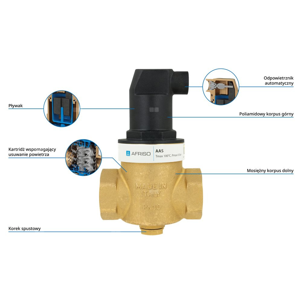 Wyposażony w ruchomy odpowietrznik automatyczny,