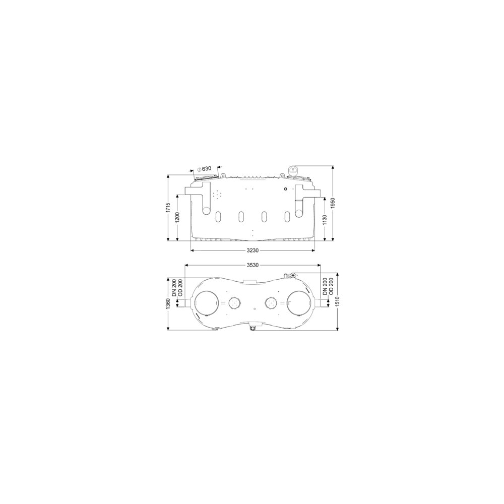 Odstęp między dnem rury dopływowej a dnem zbiornika: 1200 mm