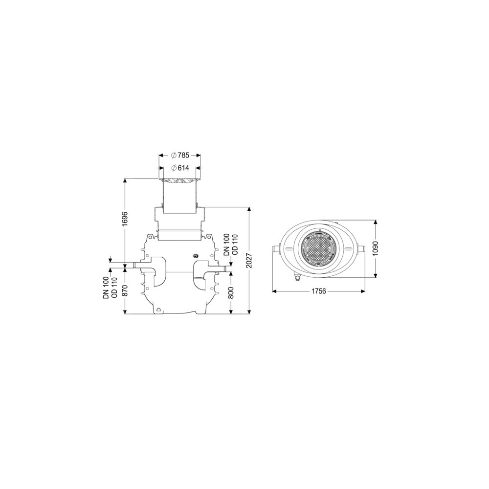 Szerokość w świetle włazu (LW): 600 mm