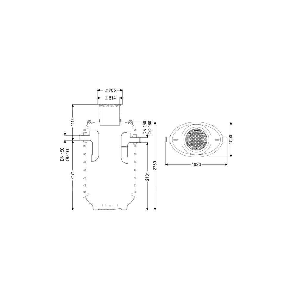 Szerokość w świetle włazu (LW): 600 mm