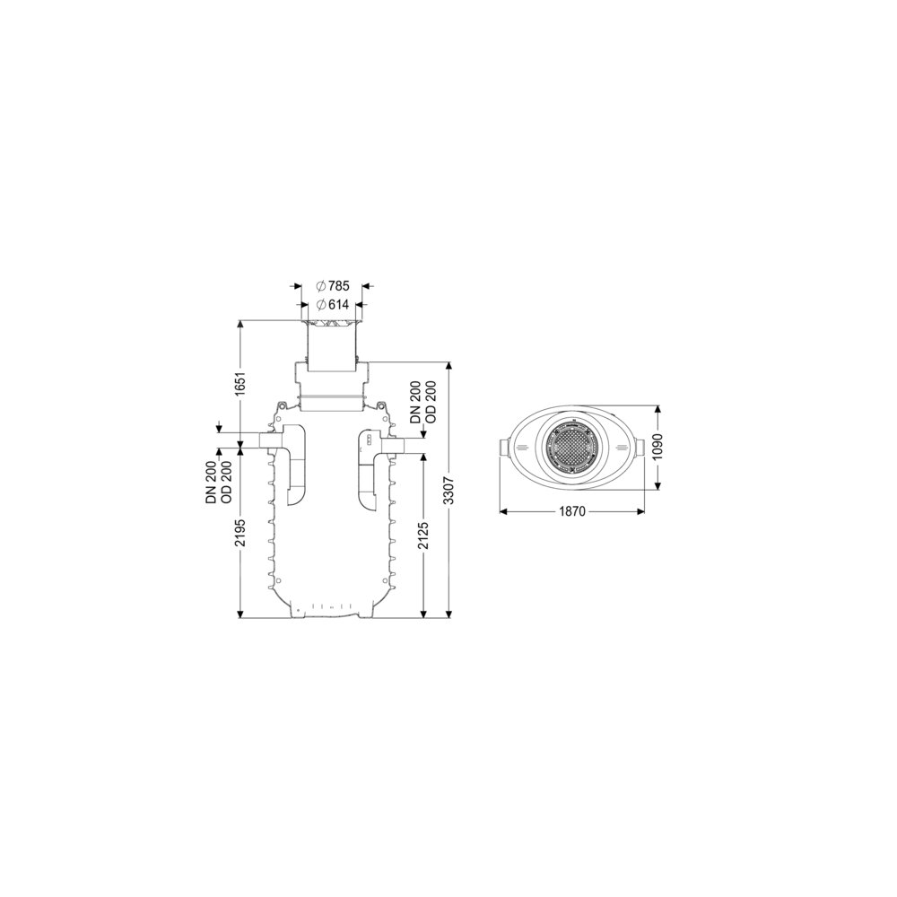 Odstęp między dnem rury dopływowej a dnem zbiornika: 2195 mm