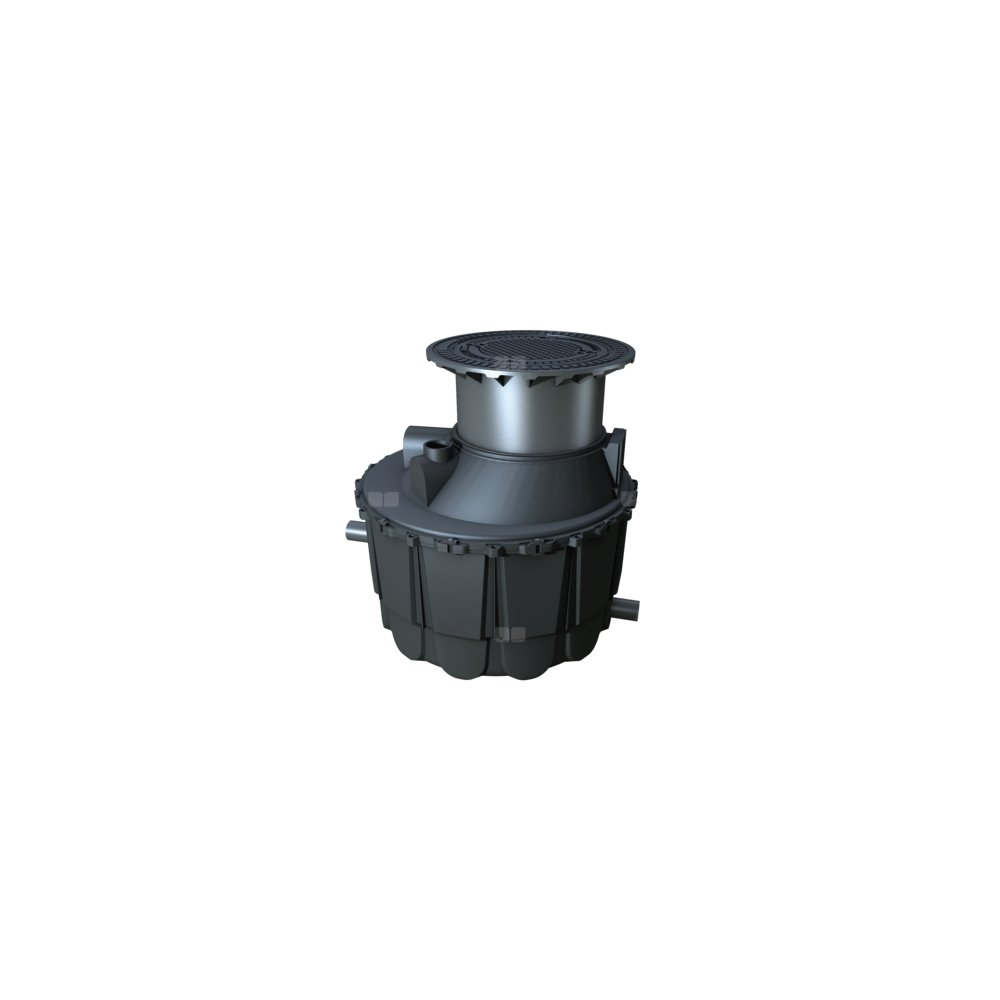 Studzienka do pobierania próbek, przeznaczona do zabudowy w ziemi, przepływowa, z zaworem przeciwzalewowym Staufix SWA, dopływem i odpływem do podłączenia do rury SML wg DIN 19522, z nasadą z pierścieniem zaciskowym i kluczem do wyjmowania