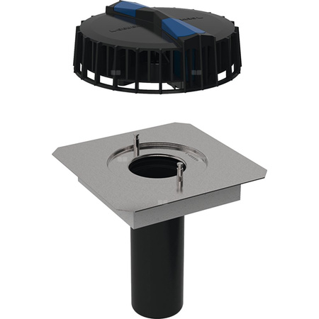 Kratka osłonowa z elementem wlotowym Element podstawowy z uniwersalnym kołnierzem przyłączeniowym ze stali CrNi 1.4301 Izolacja przeciwroszeniowa
