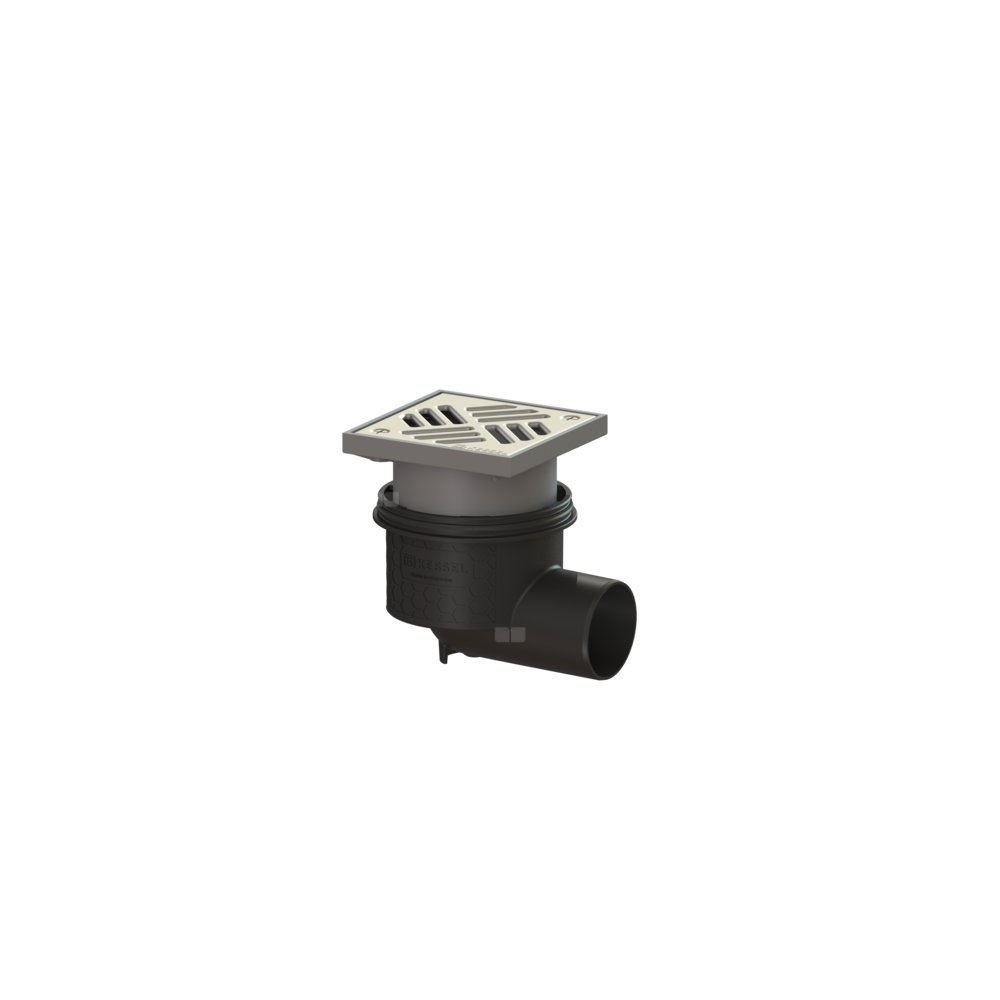 KESSEL Wpust obiektowy Ecoguss, wielkość nominalna (DN) 70, króciec boczny, typ pokrywy Kratka szczelinowa, syfonem w zestawie, z regulowaną wysokością, maks. wys. posadzki 25 mm, zamknięcie przykręcony