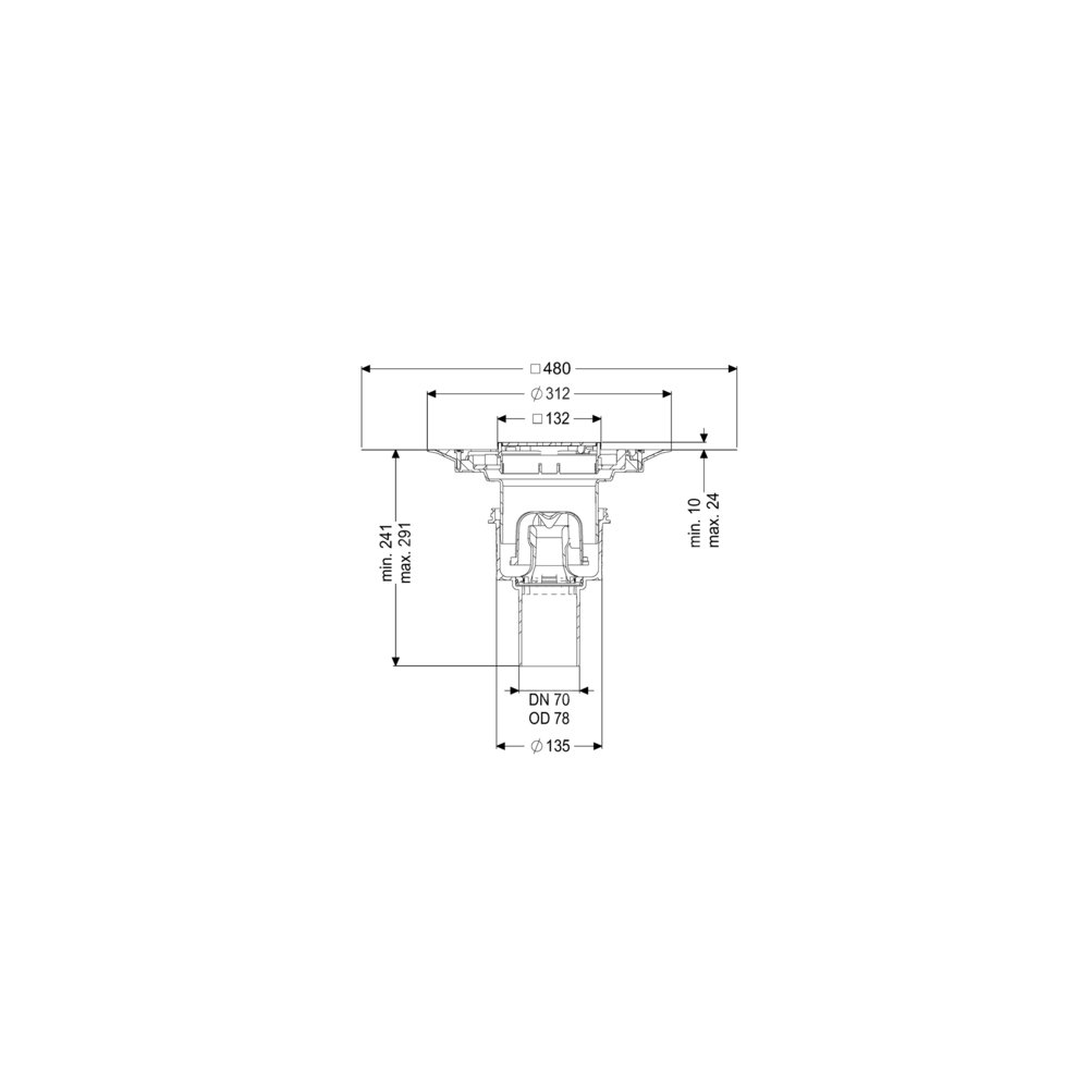 KESSEL Wpust obiektowy Ecoguss, wielkość nominalna (DN) 70, króciec pionowy, typ pokrywy Kratka design, syfonem w zestawie, regulowany w trzech wymiarach, maks. wys. posadzki 24 mm, zamknięcie Lock & Lift