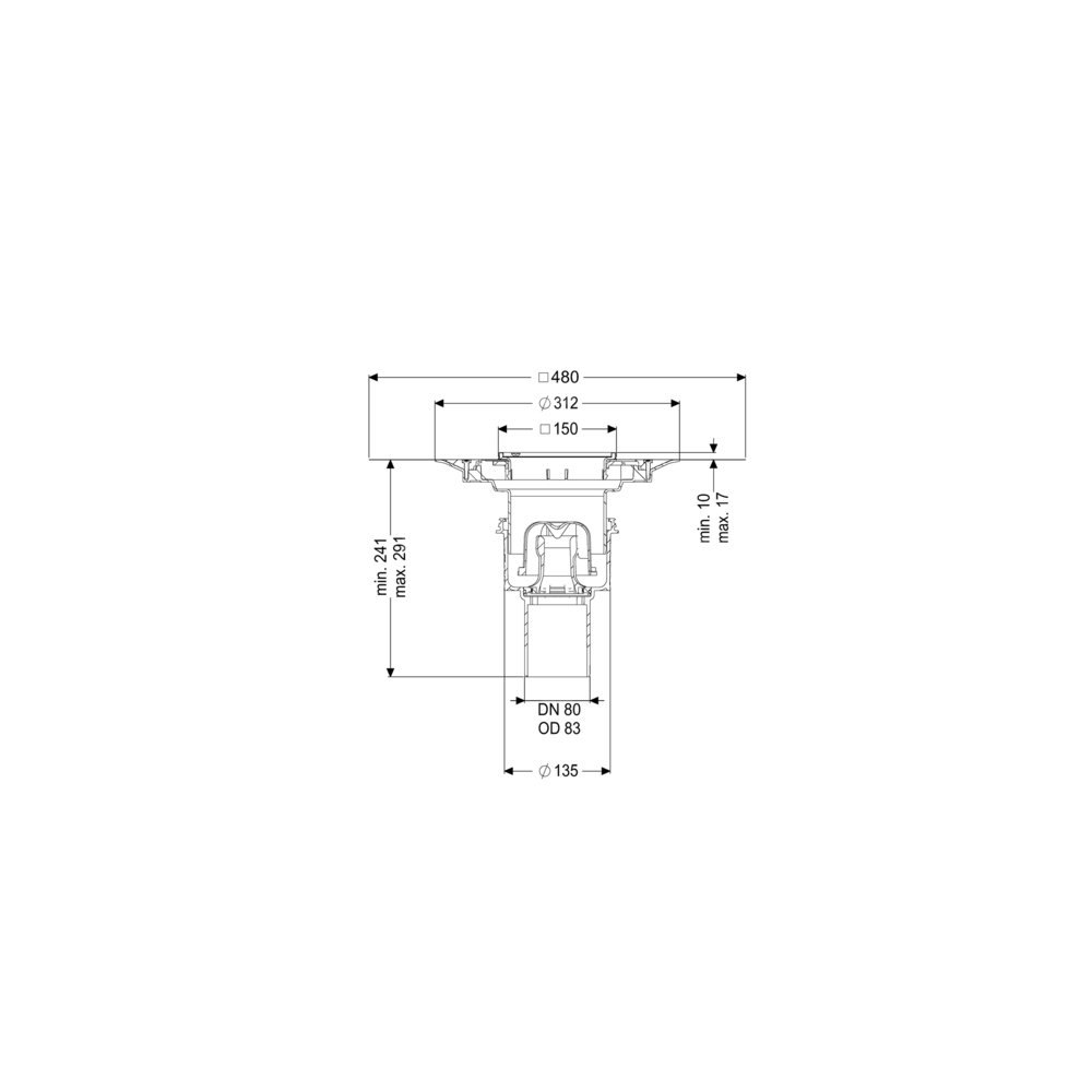 KESSEL Wpust obiektowy Ecoguss, wielkość nominalna (DN) 80, króciec pionowy, typ pokrywy Kratka szczelinowa, syfonem w zestawie, regulowany w trzech wymiarach, maks. wys. posadzki 17 mm, zamknięcie przykręcony