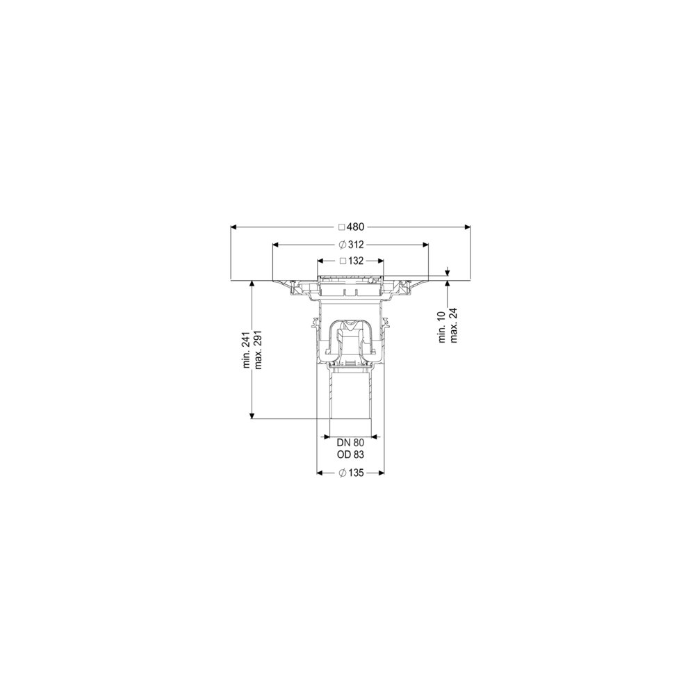 KESSEL Wpust obiektowy Ecoguss, wielkość nominalna (DN) 80, króciec pionowy, typ pokrywy Kratka design, syfonem w zestawie, regulowany w trzech wymiarach, maks. wys. posadzki 24 mm, zamknięcie Lock & Lift