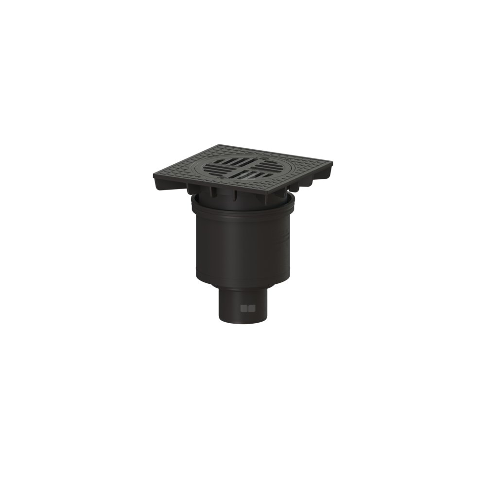 Wpust podwórzowy wykonany z tworzywa sztucznego służy do odwodnienia punktowego i jest wyposażony w uszczelkę wargową oraz pokrywę ochronną na czas fazy budowlanej.