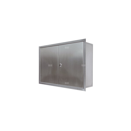 Szafa do zabudowy do montażu podtynkowego, na sprzęgło Storz B i moduł zdalnego sterowania do sterowanych programowo automatycznych separatorów. Wariant: podtynkowy z ramą 20 mm Przód: 2x zamykane drzwiczki Tylna ściana: zamknięta, z otworami