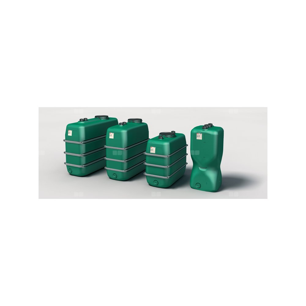 Wzmocniony stalowymi ocynkowanymi opaskami (oprócz 750 l) z dolnym kołnierzem przyłączeniowym, dwoma króćcami górnymi 2˝, otworem rewizyjnym wraz z pokrywą oraz króćcem DN 100 do przelewu nadmiaru wody, znajdującym się na ściance od frontu. Zbiornik ma zastosowanie w pomieszczeniach.