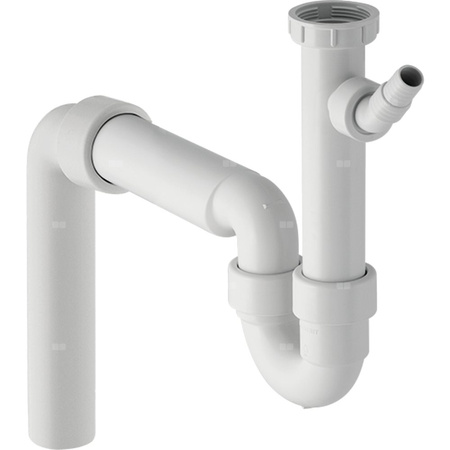 Syfon rurowy Geberit do zlewozmywaka, z łącznikiem kątowym wężyka, wylot pionowy: d=40mm, G=1 1/2″, Biały-alpin