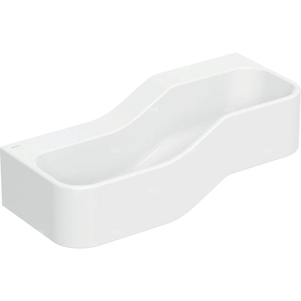 Umywalka GEBERIT Bambini 2-stanowiskowa prostokątna (rynna, bez elementów dekoracyjnych), biała, 900mm, bez otworu na baterię, bez odpływu przelewowego, półka od ściany