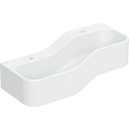 Umywalka GEBERIT Bambini 2-stanowiskowa prostokątna (rynna, bez elementów dekoracyjnych), biała, 900mm, otwór na baterię na środku (x2), bez odpływu przelewowego, półka od ściany