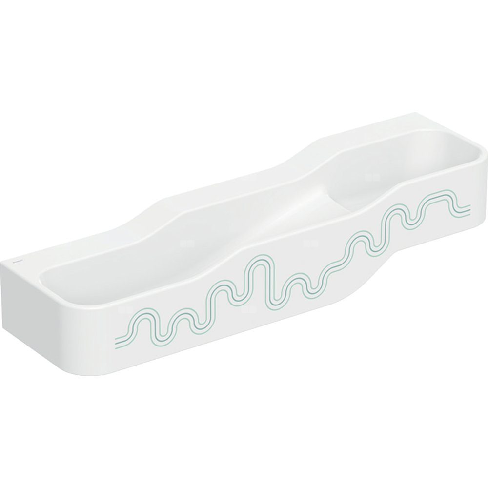 Umywalka GEBERIT Bambini 3-stanowiskowa prostokątna (rynna, elementy dekoracyjne), biała, 1400mm, bez otworu na baterię, bez odpływu przelewowego, półka od ściany