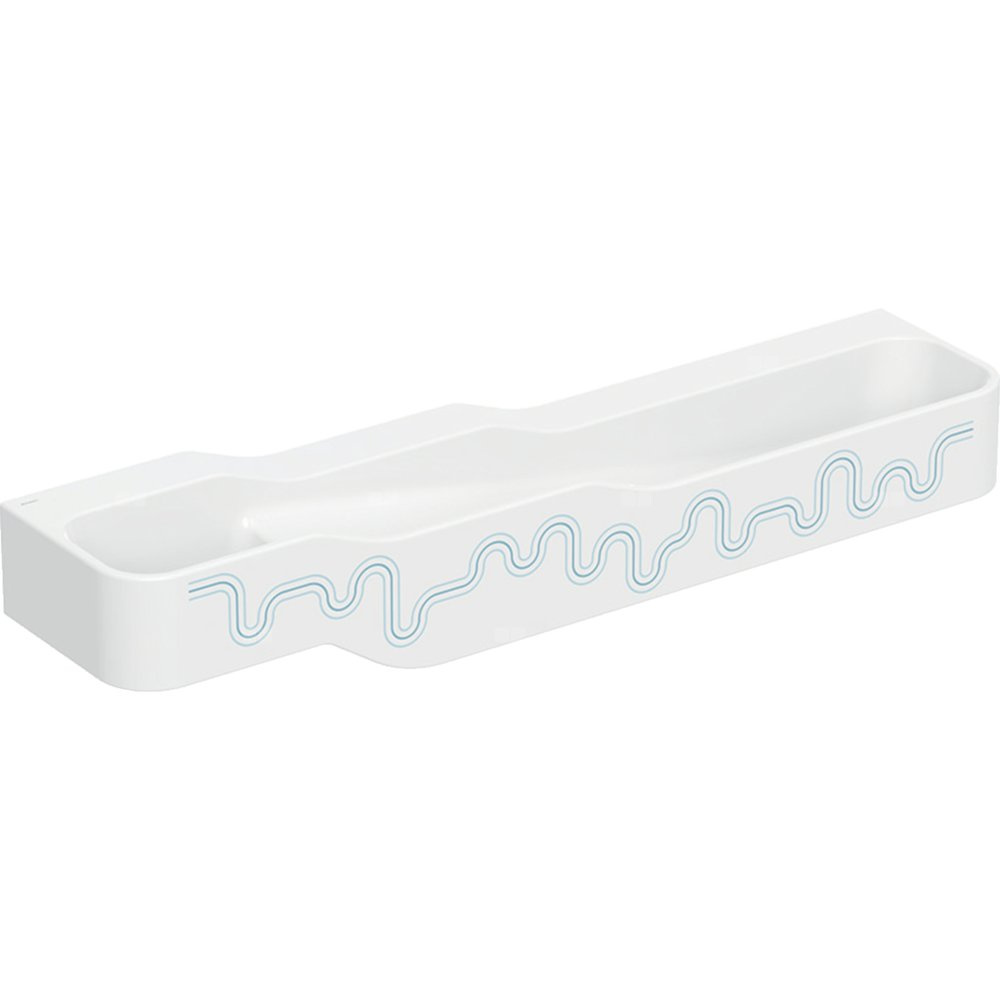 Umywalka GEBERIT Bambini 4-stanowiskowa prostokątna (rynna, elementy dekoracyjne), biała, 1800mm, bez otworu na baterię, bez odpływu przelewowego, półka od ściany