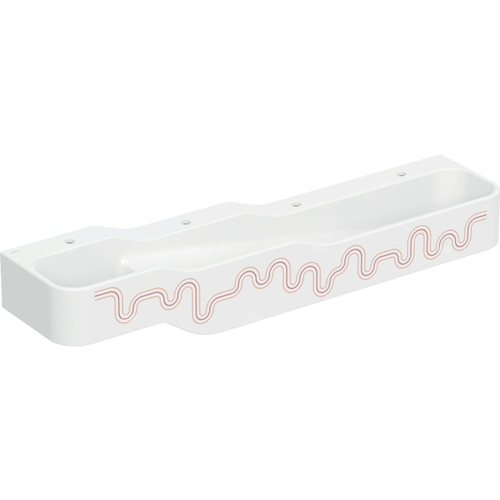 Umywalka GEBERIT Bambini 4-stanowiskowa prostokątna (rynna, elementy dekoracyjne), biała, 1800mm, otwór na baterię na środku (x4), bez odpływu przelewowego, półka od ściany