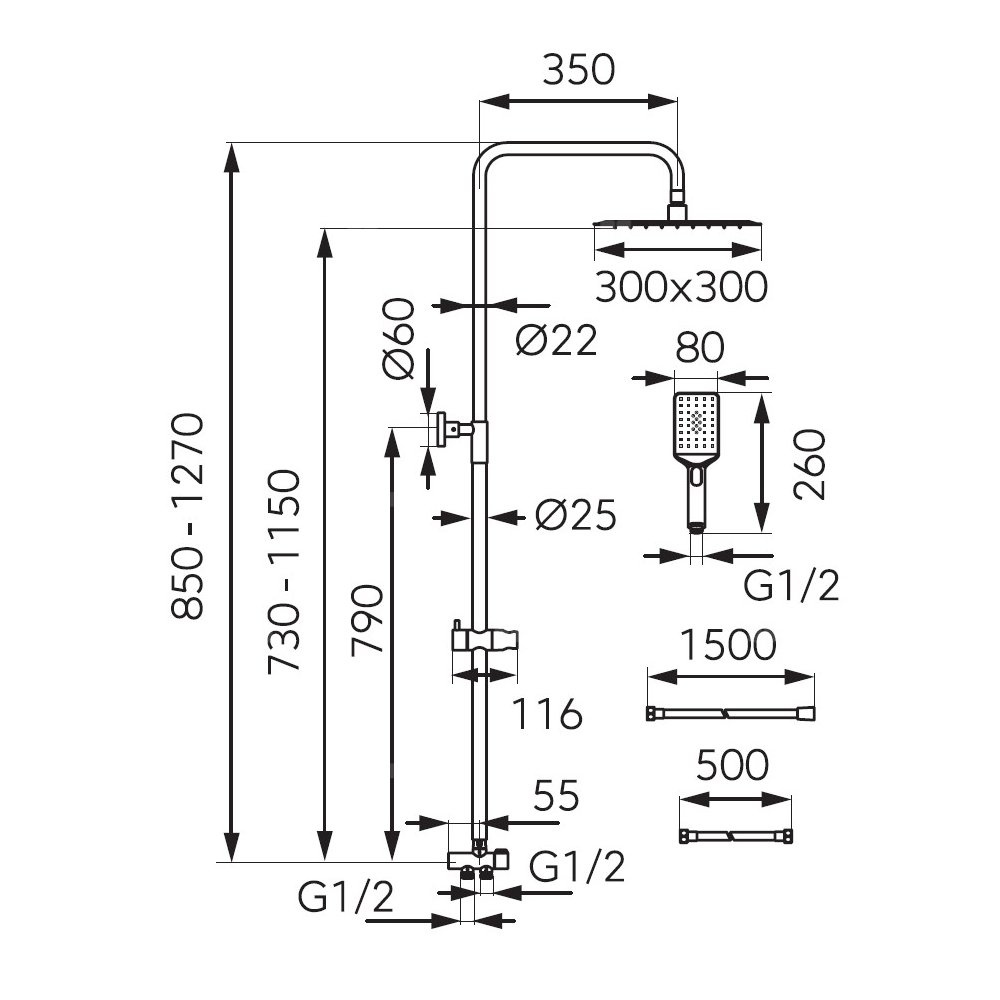 • wąż podłączeniowy 500 mm z nakrętką G1/2 - uniwersalne podłączenie do każdej baterii wannowej i natryskowej