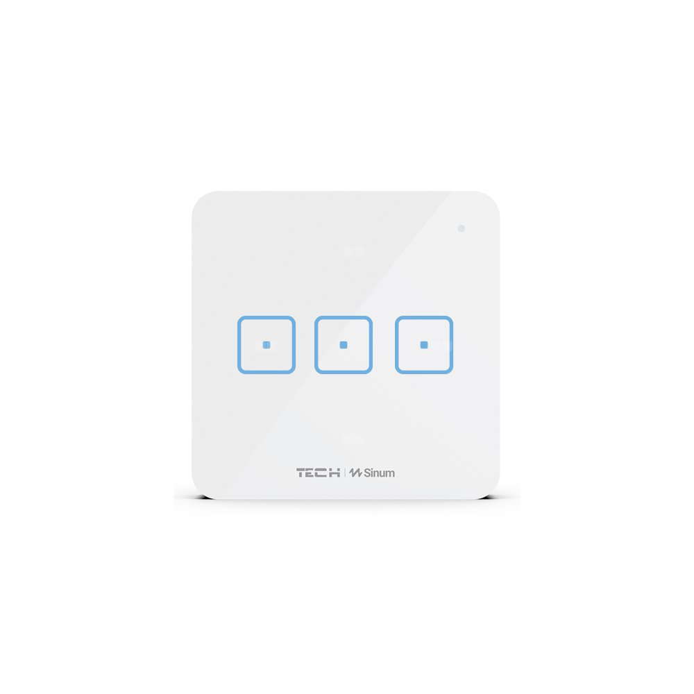 Szklany włącznik z serii SINGLE do sterowania nie tylko oświetleniem, ale także dowolnym urządzeniem podłączonym do systemu inteligentnego domu SINUM. Włącznik posiada podświetlenie LED, które informuje o stanie urządzenia (on/off). Komunikacja z centralą bezprzewodowa.