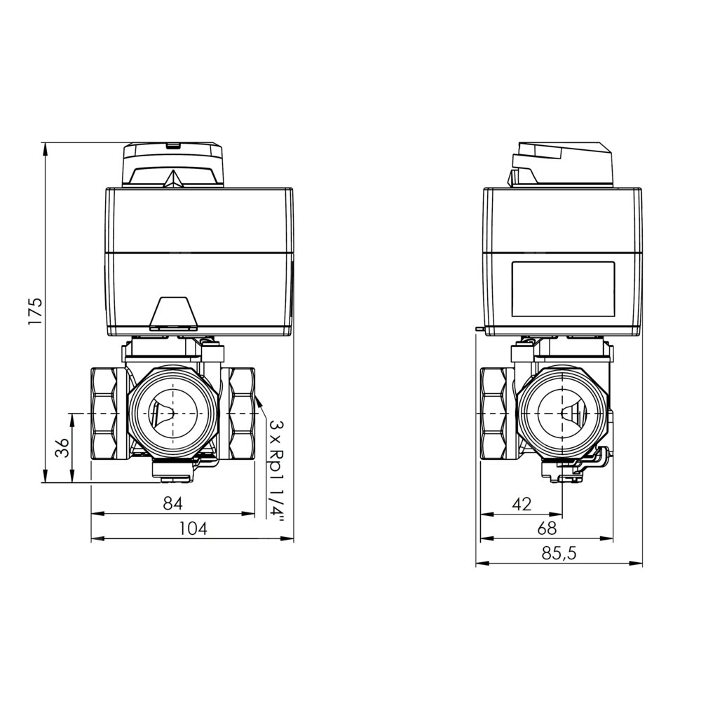 Zawór obrotowy trójdrogowy AFRISO ARV 385 Vario ProClick, mieszający, Siłownik elektryczny ARM 343, DN 32