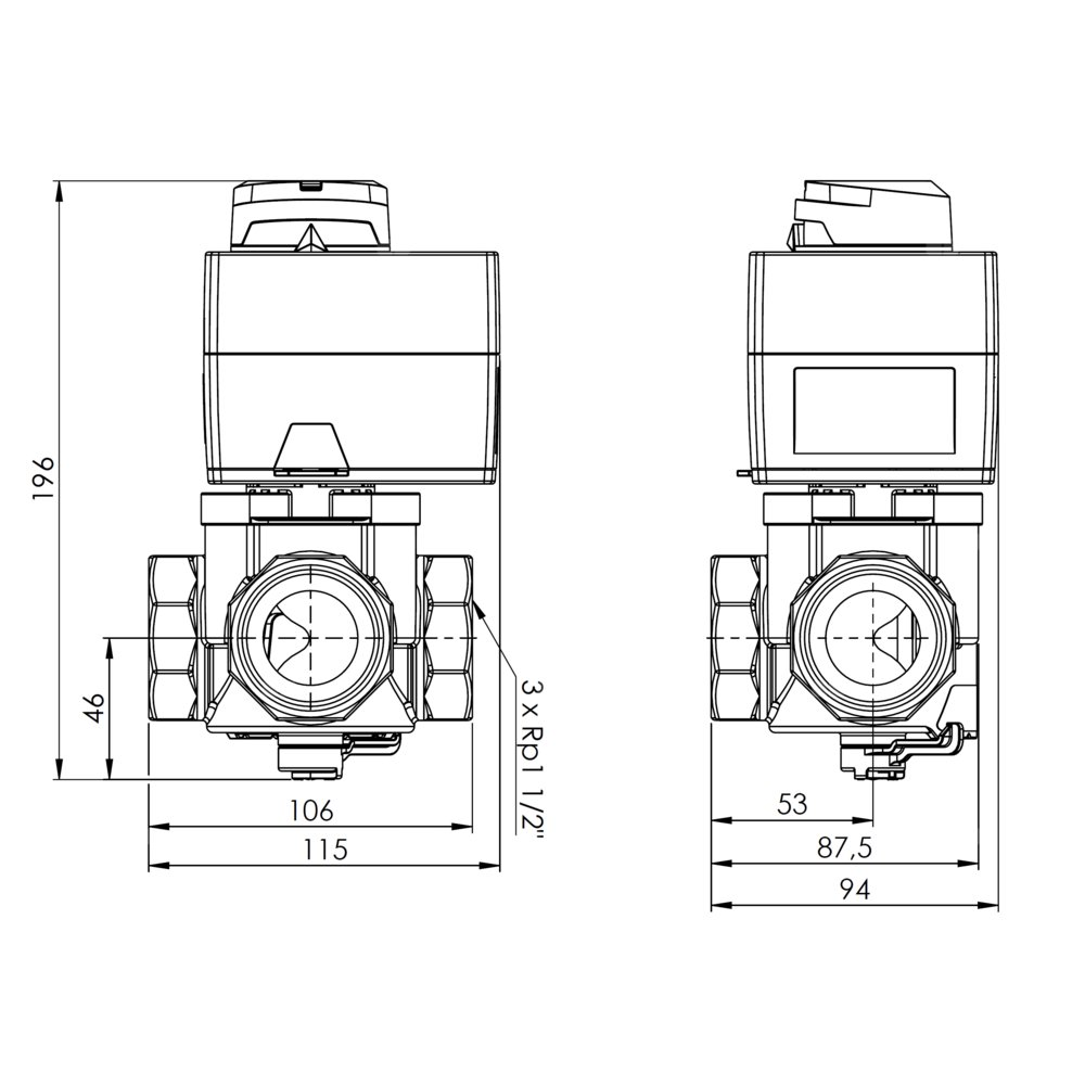 Zawór obrotowy trójdrogowy AFRISO ARV 386 Vario ProClick, mieszający, Siłownik elektryczny ARM 343, DN 40