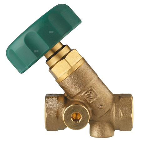 Strömax-AWD, zawór odcinający, figura skośna, gwint wewnętrzny Rp. Mosiądz odporny na wypłukiwanie cynku, wykonanie żółte. * 2 nawiercone otwory 1/4 i wkręcony 1 korek 1 0273 09, drugi otwór jest niezaślepiony