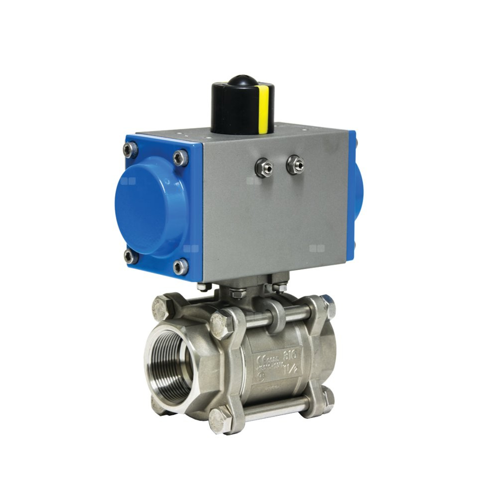 Zawór odcinający kulowy ze stali nierdzewnej, typ PKI gwintowany z napędem pneumatycznym dwustronnego działania, Pnom=5,0MPa, Tmax=180C 3"