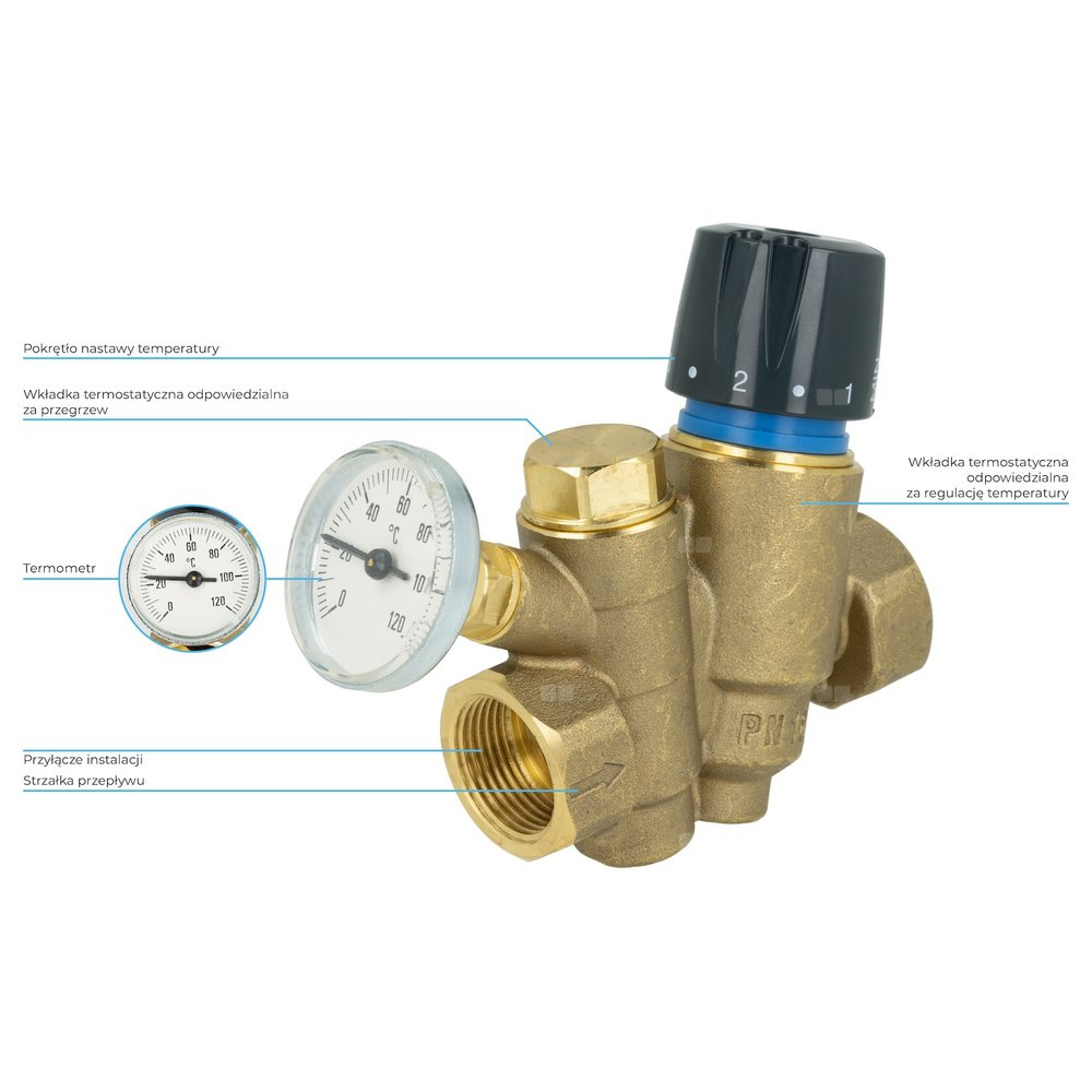 Termometr o zakresie pomiarowym 0÷120°C umożliwia kontrolę aktualnej temperatury wody.