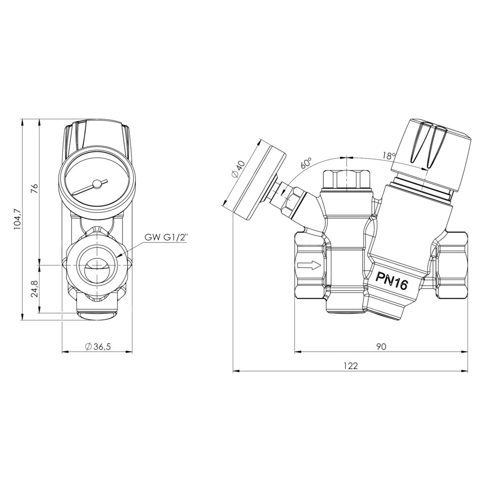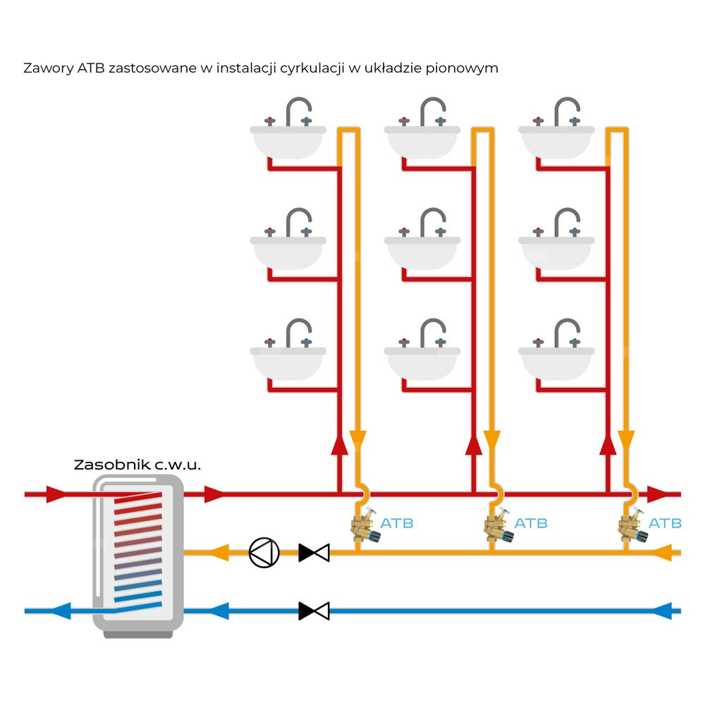 Stosowany w instalacjach cyrkulacji c.w.u.Montowany na powrocie z danego pionu / gałęzi cyrkulacji.