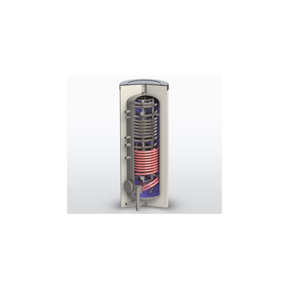 Zbiornik buforowy typu WGJ-B inox z wężownicą (ze stali nierdzewnej) z izolacją term. 750 l, czarny w poliuret. bez grz. w pł. skay b/k