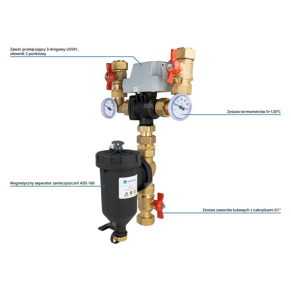 Zespół powrotu do pompy ciepła AMB Lite z zaworem przełączającym USV, separatorem zanieczyszczeń ADS 160, DN20, przyłącza G1"