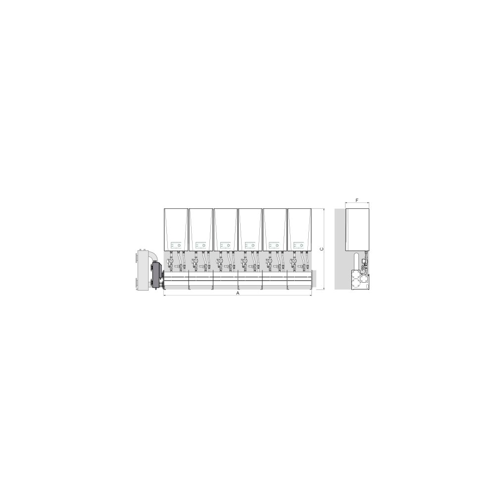 Zestaw kaskadowy na ścianie DE DIETRICH LW, maksymalna ilosć urządzeń: 2xAMC Evo 45-65+3xAMC Evo 90-115+1xAMC135-160