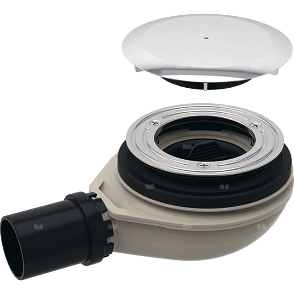 Zestaw odpływowy do brodzików Geberit d90, z pokrywą odpływu, wysokość zasyfonowania 30 mm, odpływ z PE: d=40mm, Chrom błyszczący, Króciec przyłączeniowy=PE-HD