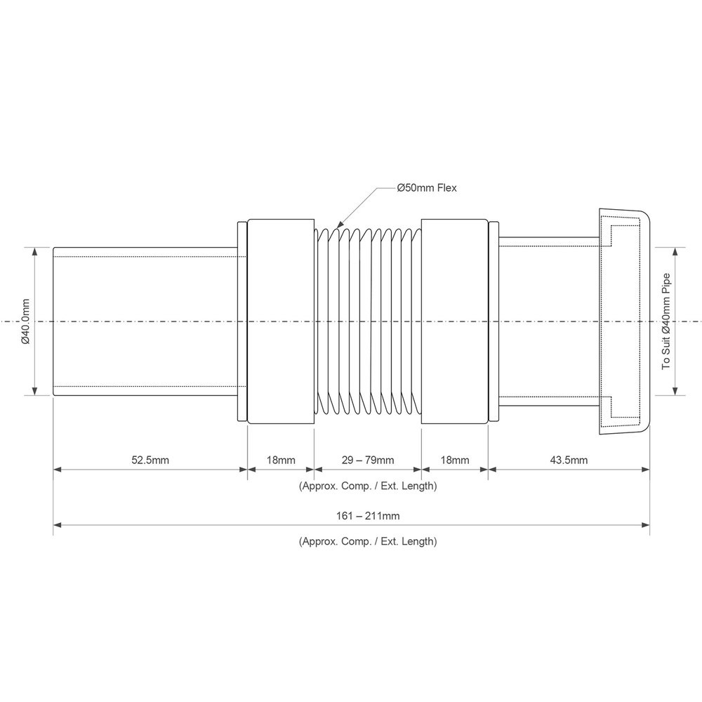 Złączka montażowa harmonijkowa MFLEX-40PF to elastyczny element instalacyjny, zaprojektowany do ułatwienia połączeń systemów odpływowych o średnicy 40x40 mm. Dzięki końcówce mufowej i prostej, złączka zapewnia stabilne i bezpieczne połączenie, idealne do instalacji w miejscach o ograniczonym dostępie. Harmonijkowa konstrukcja pozwala na regulację długości, co zwiększa elastyczność montażu.