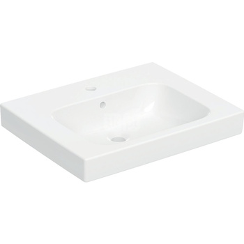 Umywalka GEBERIT Modo prostokątna, biała, 600mm, otwór na baterię na środku, z odpływem przelewowym, półka od ściany