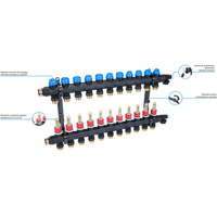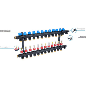 Rozdzielacz do ogrzewania podłogowego AFRISO ProCalida EF1 K 12-obieg. poliamid GZ 1" x Eurocono 3/4" + przepływomierz + zawór napełn/spust