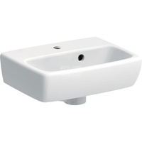 Umywalka GEBERIT Selnova Compact prostokątna, biała, 450mm, otwór na baterię z prawej, z odpływem przelewowym, półka z lewej